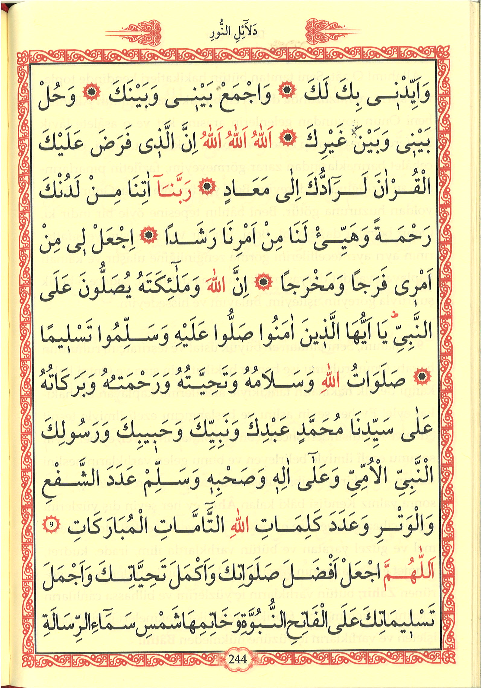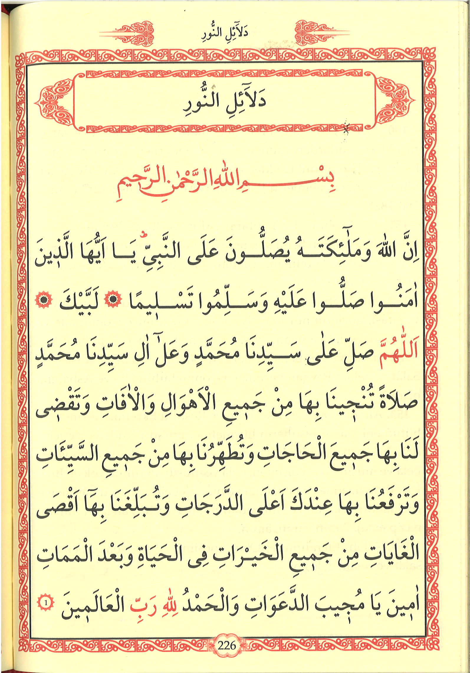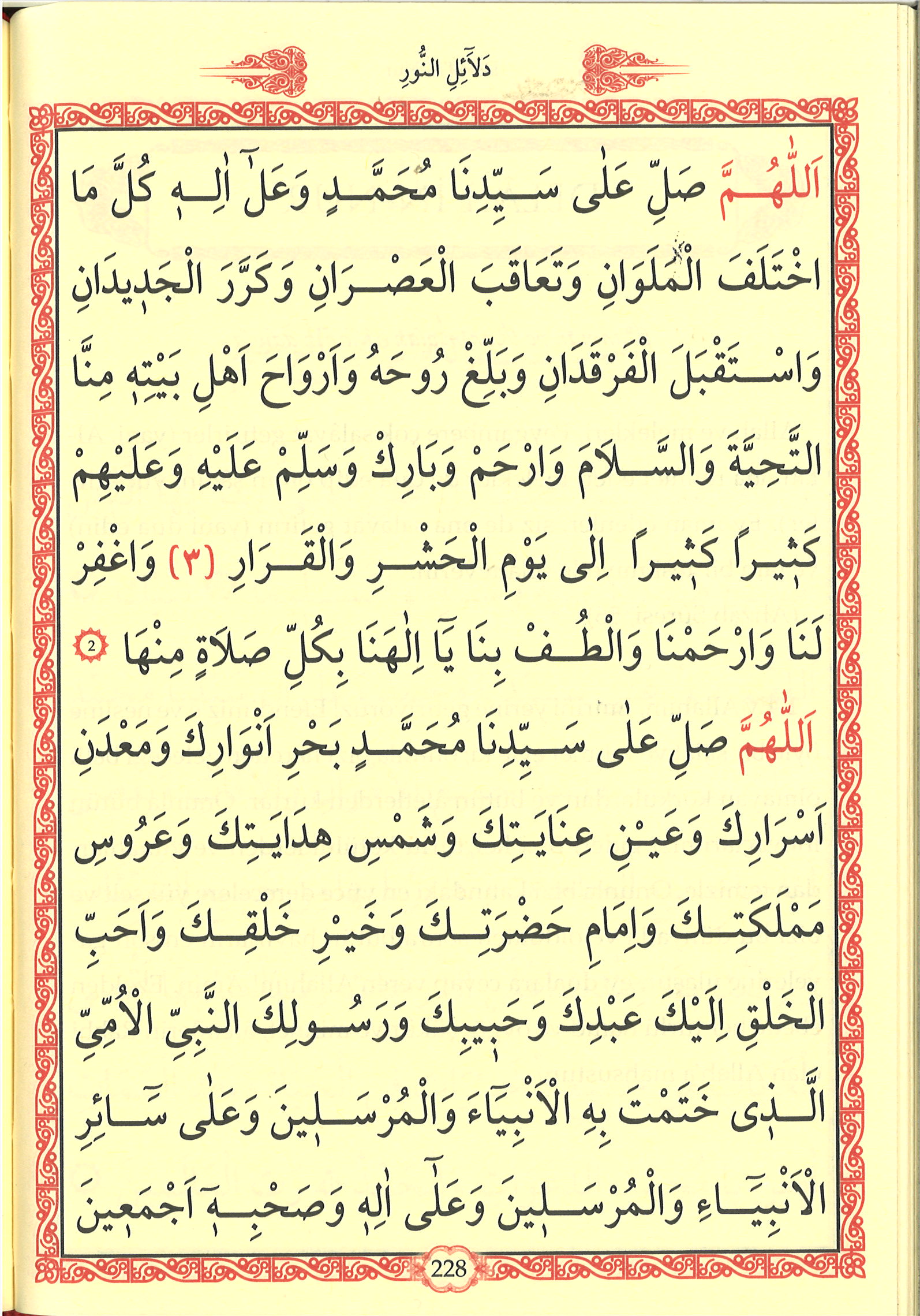 ﺍَﻟﻠَّﻬُﻢَّ ﺻَﻞِّ ﻭَ ﺳَﻠِّﻢْ ﺍَﻓْﻀَﻞَ ﻭَ ﺍَﺟْﻤَﻞَ ﻭَ ﺍَﻧْﺒَﻞَ ﻭَ ﺍَﻇْﻬَﺮَ ﻭَ ﺍَﻃْﻬَﺮَ ﻭَ ﺍَﺣْﺴَﻦَ ﻭَ ﺍَﺑَﺮَّ ﻭَ ﺍَﻛْﺮَﻡَ ﻭَ ﺍَﻋَﺰَّ ﻭَ ﺍَﻋْﻈَﻢَ ﻭَ ﺍَﺷْﺮَﻑَ ﻭَ ﺍَﻋْﻠَﻰ ﻭَ ﺍَﺯْﻛَﻰ ﻭَ ﺍَﺑْﺮَﻙَ ﻭَ ﺍَﻟْﻄَﻒَ ﺻَﻠَﻮَﺍﺗِﻚَ ﻭَ ﺍَﻭْﻓَﻰ ﻭَ ﺍَﻛْﺜَﺮَ ﻭَ ﺍَﺯْﻳَﺪَ ﻭَ ﺍَﺭْﻗَﻰ ﻭَ ﺍَﺭْﻓَﻊَ ﻭَ ﺍَﺩْﻭَﻡَ ﺳَﻠﺎَﻣِﻚَ ﺻَﻠﺎَﺓً ﻭَ ﺳَﻠﺎَﻣًﺎ ﻭَ ﺭَﺣْﻤَﺔً ﻭَ ﺭِﺿْﻮَﺍﻧًﺎ ﻭَ ﻋَﻔْﻮًﺍ ﻭَ ﻏُﻔْﺮَﺍﻧًﺎ ﺗَﻤْﺘَﺪُّ ﻭَ ﺗَﺰِﻳﺪُ ﺑِﻮَﺍﺑِﻞِ ﺳَﺤَٓﺎﺋِﺐِ ﻣَﻮَﺍﻫِﺐِ ﺟُﻮﺩِﻙَ ﻭَ ﻛَﺮَﻣِﻚَ ﻭَ ﺗَﻨْﻤُﻮﺍ ﻭَ ﺗَﺰْﻛُﻮﺍ ﺑِﻨَﻔَٓﺎﺋِﺲِ ﺷَﺮَٓﺍﺋِﻒِ ﻟَﻄَٓﺎﺋِﻒِ ﺟُﻮﺩِﻙَ ﻭَ ﻣِﻨَﻨِﻚَ ﺍَﺯَﻟِﻴَّﺔً ﺑِﺎَﺯَﻟِﻴَّﺘِﻚَ ﻟﺎَ ﺗَﺰُﻭﻝُ ﺍَﺑَﺪِﻳَّﺔً ﺑِﺎَﺑَﺪِﻳَّﺘِﻚَ ﻟﺎَ ﺗَﺤُﻮﻝُ ﻋَﻠَﻰ ﻋَﺒْﺪِﻙَ ﻭَ ﺣَﺒِﻴﺒِﻚَ ﻭَ ﺭَﺳُﻮﻟِﻚَ ﻣُﺤَﻤَّﺪٍ ﺧَﻴْﺮِ ﺧَﻠْﻘِﻚَ ﺍﻟﻨُّﻮﺭِ ﺍﻟْﺒَﺎﻫِﺮِ ﺍﻟﻠﺎَّﻣِﻊِ ﻭَ ﺍﻟْﺒُﺮْﻫَﺎﻥِ ﺍﻟﻈَّﺎﻫِﺮِ ﺍﻟْﻘَﺎﻃِﻊِ ﻭَ ﺍﻟْﺒَﺤْﺮِ ﺍﻟﺬَّﺍﺧِﺮِ ﻭَ ﺍﻟﻨُّﻮﺭِ ﺍﻟْﻐَﺎﻣِﺮِ ﻭَ ﺍﻟْﺠَﻤَﺎﻝِ ﺍﻟﺰَّﺍﻫِﺮِ ﻭَ ﺍﻟْﺠَﻠﺎَﻝِ ﺍﻟْﻘَﺎﻫِﺮِ ﻭَ ﺍﻟْﻜَﻤَﺎﻝِ ﺍﻟْﻔَﺎﺧِﺮِ ﺻَﻠﺎَﺗَﻚَ ﺍﻟَّﺘِﻰ ﺻَﻠَّﻴْﺖَ ﺑِﻌَﻈَﻤَﺔِ ﺫَﺍﺗِﻚَ ﻋَﻠَﻴْﻪِ ﻭَ ﻋَﻠَٓﻰ ﺍَﻟِﻪِ ﻭَ ﺻَﺤْﺒِﻪِ ﻛَﺬَﻟِﻚَ ﺻَﻠﺎَﺓً ﺗَﻐْﻔِﺮُ ﺑِﻬَﺎ ﺫُﻧُﻮﺑَﻨَﺎ ﻭَ ﺗَﺸْﺮَﺡُ ﺑِﻬَﺎ ﺻُﺪُﻭﺭَﻧَﺎ ﻭَ ﺗُﻄَﻬِّﺮُ ﺑِﻬَﺎ ﻗُﻠُﻮﺑَﻨَﺎ ﻭَ ﺗُﺮَﻭِّﺡُ ﺑِﻬَٓﺎ ﺍَﺭْﻭَﺍﺣَﻨَﺎ ﻭَ ﺗُﻘَﺪِّﺱُ ﺑِﻬَٓﺎ ﺍَﺳْﺮَﺍﺭَﻧَﺎ ﻭَ ﺗُﻨَﺰِّﻩُ ﺑِﻬَﺎ ﺧَﻮَﺍﻃِﺮَﻧَﺎ ﻭَ ﺍَﻓْﻜَﺎﺭَﻧَﺎ ﻭَ ﺗُﺼَﻔِّﻰ ﺑِﻬَﺎ ﻛُﺪُﻭﺭَﺍﺕِ ﻣَﺎ ﻓِٓﻰ ﺍَﺳْﺮَﺍﺭِﻧَﺎ ﻭَ ﺗَﺸْﻔِﻰ ﺑِﻬَٓﺎ ﺍَﻣْﺮَﺍﺿَﻨَﺎ ﻭَ ﺗَﻔْﺘَﺢُ ﺑِﻬَٓﺎ ﺍَﻗْﻔَﺎﻝَ ﻗُﻠُﻮﺑِﻨَﺎ ﺑِﻨُﻮﺭِ ﺍﻟْﻔَﺘْﺢِ ﺍﻟْﻤُﺒِﻴﻦِ ﺑِﺮَﺣْﻤَﺘِﻚَ ﻳَٓﺎ ﺍَﺭْﺣَﻢَ ﺍﻟﺮَّﺍﺣِﻤِﻴﻦَ ﻭَ ﻳَٓﺎ ﺍَﻛْﺮَﻡَ ﺍﻟْﺎَﻛْﺮَﻣِﻴﻦَ ﻧَﺴْﺌَﻠُﻚَ ﺑِﺤَﻖِّ ﺍَﻧْﻮَﺍﺭِ ﺻَﻠَﻮَﺍﺗِﻚَ ﻋَﻠَﻰ ﺣَﺒِﻴﺒِﻚَ ﺭِﺿْﻮَﺍﻧَﻚَ ﻭَ ﻏُﻔْﺮَﺍﻧَﻚَ ﻭَ ﺟَﻨَّﺘَﻚَ ﻭَ ﺍﻟْﺎِﺳْﺘِﻘَﺎﻣَﺔَ ﻋَﻠَﻰ ﺍﻟﺼِّﺮَﺍﻁِ ﺍﻟْﻤُﺴْﺘَﻘِﻴﻢِ ﺑِﺮَﺣْﻤَﺘِﻚَ ﻳَٓﺎ ﺍَﺭْﺣَﻢَ ﺍﻟﺮَّﺍﺣِﻤِﻴﻦَ ﻭَ ﺍﻟْﺤَﻤْﺪُ ﻟِﻠَّﻪِ ﺭَﺏِّ ﺍﻟْﻌَﺎﻟَﻤِﻴﻦَ