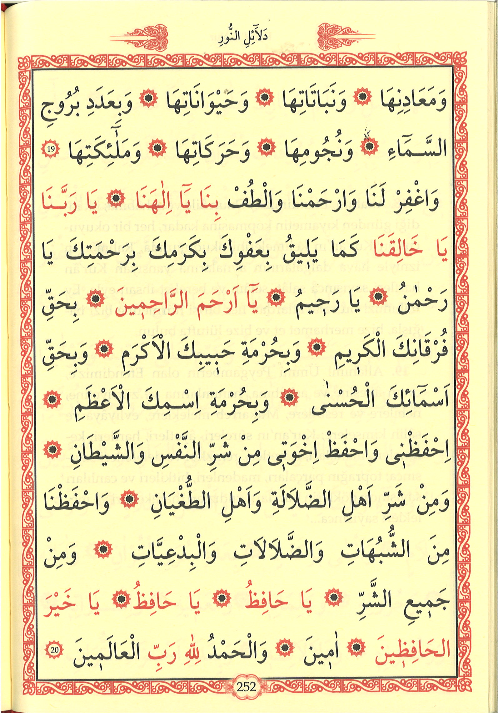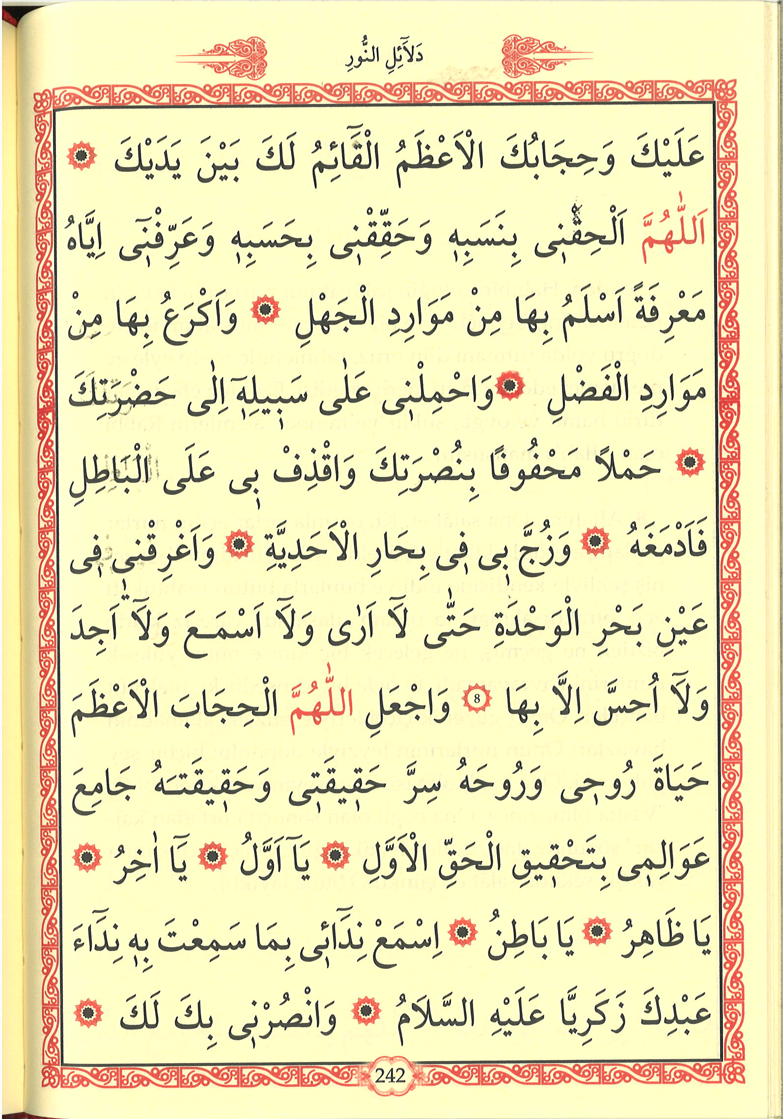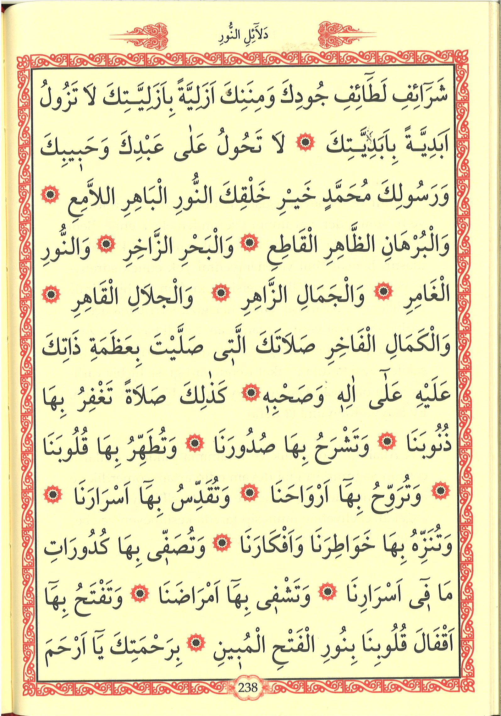ﻳَﺎ ﻧُﻮﺭَ ﺍﻟْﺎَﻧْﻮَﺍﺭِ ﻳَﺎ ﻟَﻄِﻴﻒُ ﻳَﺎ ﺳَﺘَّﺎﺭُ ﻧَﺴْﺌَﻠُﻚَ ﺍَﻥْ ﺗُﺼَﻠِّﻰَ ﻋَﻠَﻰ ﺳَﻴِّﺪِﻧَﺎ ﻣُﺤَﻤَّﺪٍ ﻧَﺒْﺮَﺍﺱِ ﺍﻟْﺎَﻧْﺒِﻴَٓﺎﺀِ ﻭَ ﻧَﻴِّﺮِ ﺍﻟْﺎَﻭْﻟِﻴَٓﺎﺀِ ﻭَ ﺯِﺑَﺮْﻗَﺎﻥِ ﺍﻟْﺎَﺻْﻔِﻴَٓﺎﺀِ ﻭَ ﻳُﻮﺡِ ﺍﻟﺜَّﻘَﻠَﻴْﻦِ ﻭَ ﺿِﻴَٓﺎﺀِ ﺍﻟْﺨَﺎﻓِﻘَﻴْﻦِ ﻭَ ﺍَﻥْ ﺗَﺮْﻓَﻊَ ﻭُﺟُﻮﺩَﻧَٓﺎ ﺍِﻟَﻰ ﻓَﻠَﻚِ ﺍﻟْﻌِﺮْﻓَﺎﻥِ ﻭَ ﺍَﻥْ ﺗُﺜَﺒِّﺖَ ﺷُﻬُﻮﺩَﻧَﺎ ﻓِﻰ ﻣَﻘَﺎﻡِ ﺍﻟْﺎِﺣْﺴَﺎﻥِ ﺍَﻣِﻴﻦَ ﻭَ ﺍﻟْﺤَﻤْﺪُ ﻟِﻠَّﻪِ ﺭَﺏِّ ﺍﻟْﻌَﺎﻟَﻤِﻴﻦَ