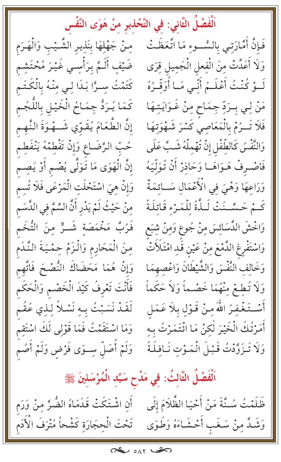 Kasîde-i bürde, on kısmdır: