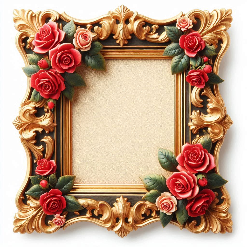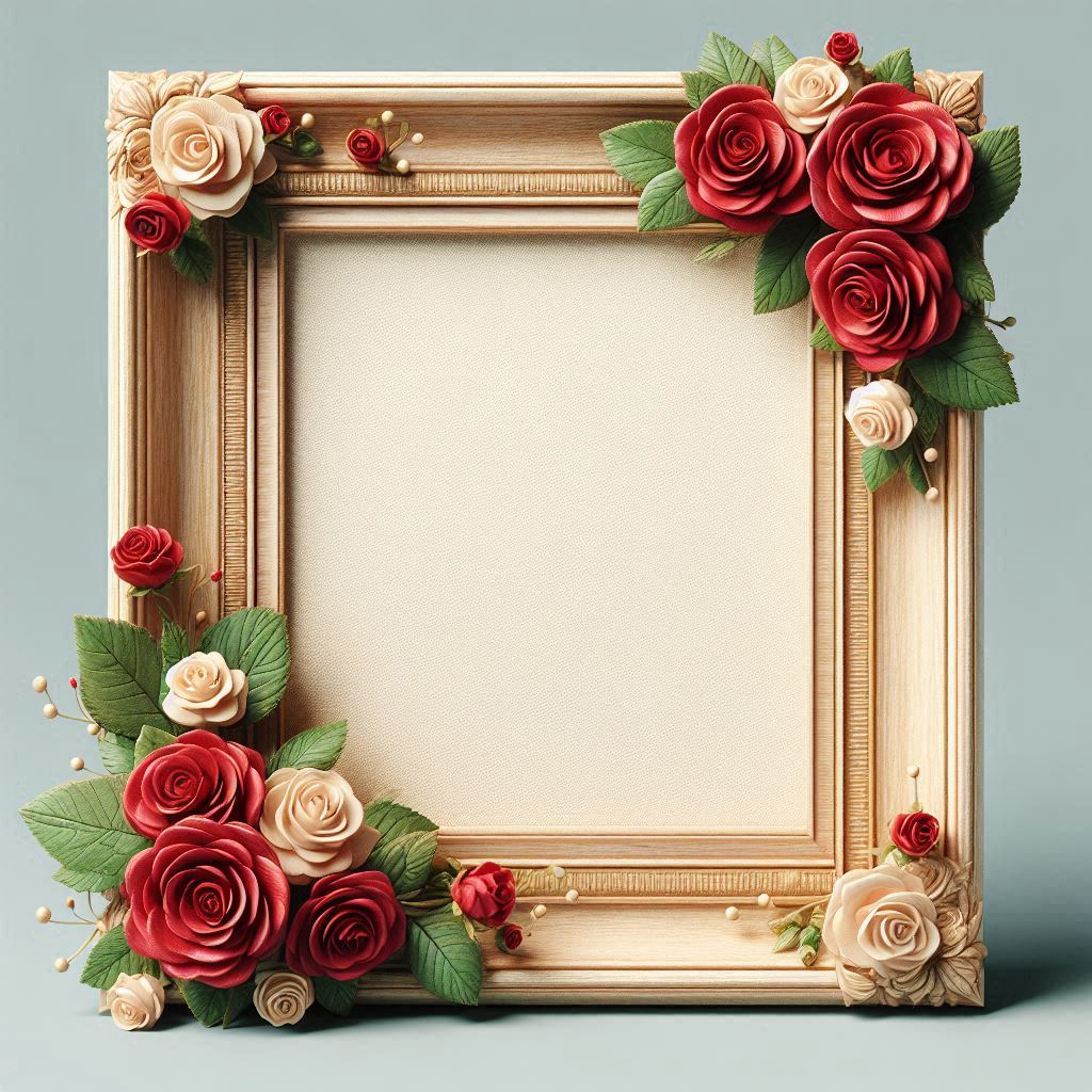 Editable Ahşap Çerçeve ve Güller - Frame - V03072024012914P6