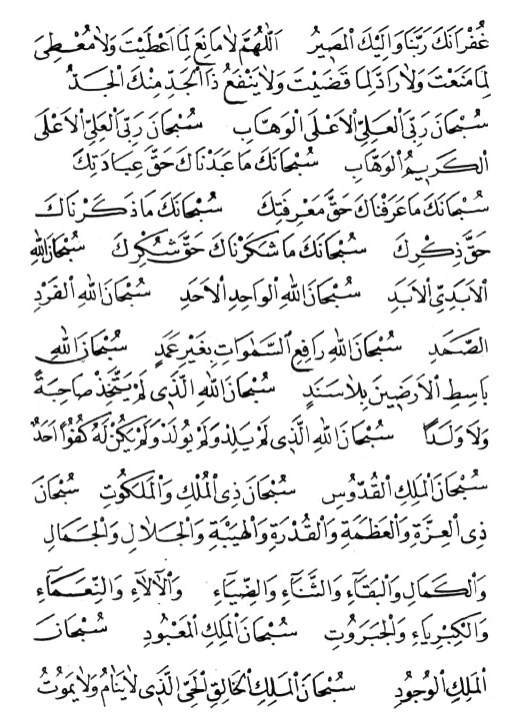 * Sübhaneke rabbiyel aliyyil azıymil hasibil hakemil adlir rakıybil bazihış şamihıl mücibil ğaniyyir raşidis saburil celilil bediın nuril muksitıl camiıl mu’tıl mani’